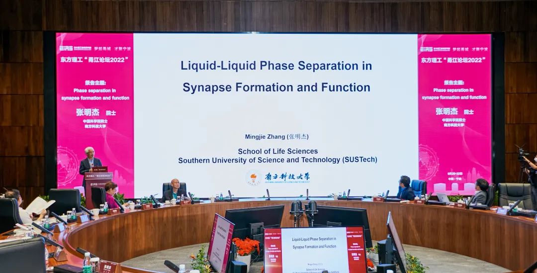 张明杰院士以《Phase separation in synapse formation and function 》为主题作专题报告。报告指出各类参与神经突触的蛋白之间通过紧密的相互作用,引发了相分离,相分离是突触形成的关键机制,而进一步探讨这一机制,可以为人的思维和意识等问题的研究提供潜在的新思路。