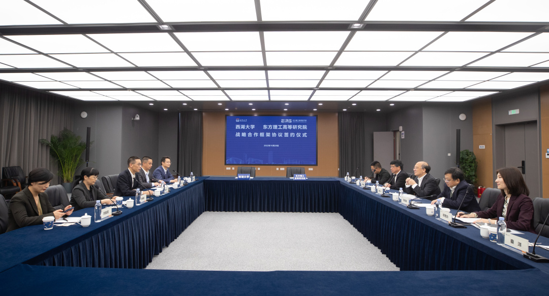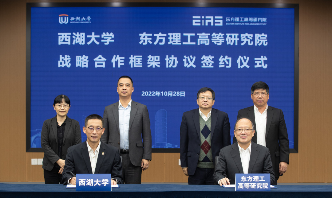 10月28日,宁波市东方理工高等研究院与西湖大学在西湖大学云谷校区签订战略合作框架协议。中国科学院院士、东方理工高等研究院院长陈十一和中国科学院院士、西湖大学校长施一公分别代表双方签订战略合作框架协议。双方将以此为起点,在探索体制机制改革、创新人才队伍建设与培养、打造战略科技力量等方向开展合作。