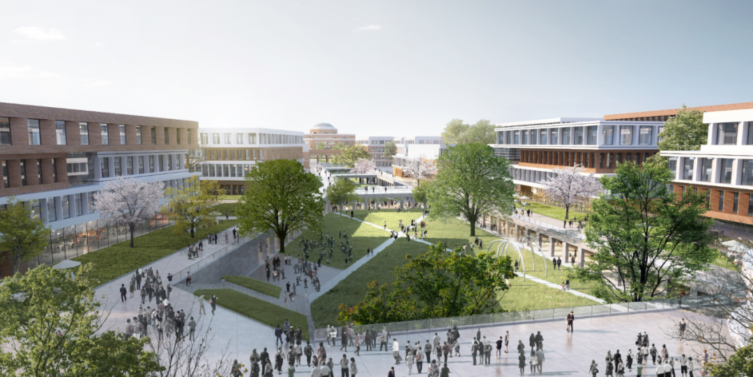东方理工大学地块规划总建筑面积约 150 万平方米,计划于 2022 年底正式开工,2025年起分批逐步建成交付使用。在整体功能落位上,力求打造便于跨学科沟通、交叉融合为核心的资源共享校园。以图书馆为中轴线,中央核心区囊括规划理学、工学、信息、商科四个学科群,同时承载公共科研中心、交叉研究中心、人文社科中心和行政功能;中轴左右两翼则承载其他校园功能,在教学研和学生生活两者之间取得平衡。