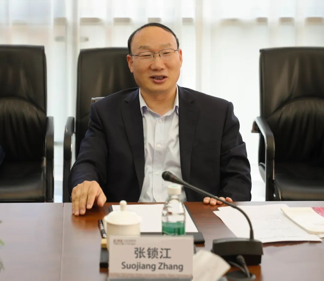张东晓对张锁江一行的到来表示热烈欢迎,并从学校定位、学科布局、人才培养等方面介绍了学校办学规划及筹建进展。他表示,期望未来与中科院过程所、河南大学进一步加强对接,扩大互利合作,并肩打造双赢局面。