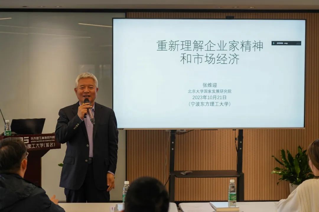 据了解,张维迎是当代中国经济改革和社会发展研究最前沿的经济学家之一。2002年获评CCTV“中国经济年度人物”;2008年入选中国经济体制改革研究会评选的“改革30年,经济30人”;2011年因对双轨制价格改革的理论贡献荣获第四届“中国经济理论创新奖”;2013年获得网易财经“年度最有影响力经济学家奖”。作为中国改革开放40余年的参与者和见证者,他始终关注真实的人和真实的市场,重视从整个社会的视角来看经济的发展。著有《重新理解企业家精神》、《回望:一个经济学家是如何长成的》等。民营经济人士变革创新研修班由宁波市委组织部、市委统战部牵头举办,围绕新科技和商业实务等领域,组织民营经济人士接受系统化培训,不断提升变革创新和经营管理能力。60余名来自于制造业、服务业、进出口等各领域各行业的民营经济人士学员参加了本次主题报告。