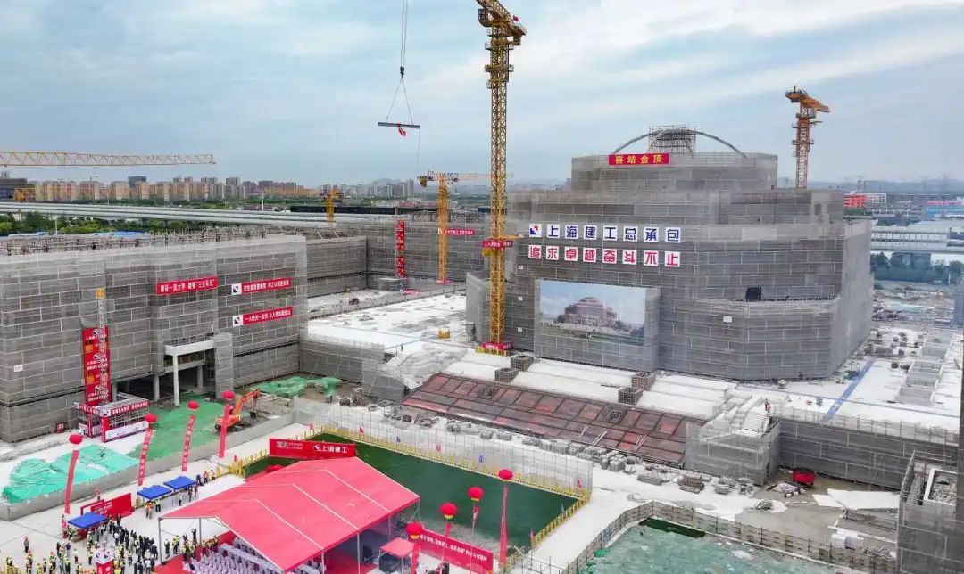 在仪式现场,张东晓致辞时指出:“今天,我们聚集在这里,不仅是为了庆祝宁波东方理工大学核心区项目结构封顶及穹顶钢构起吊仪式,更是为了彰显我们的奋斗精神和追求卓越的决心。这一项目的顺利推进,不仅象征着学校建设迈向了新的台阶,更是对我们共同努力的最好回应。”他还代表陈十一校长和全校师生感谢管理者和建设者们的辛勤付出,“无论是设计规划、材料选用,还是施工管理,每一个细节都凝聚着大家的心血和汗水,大家为实现学校百年校园的梦想默默奉献着,使得我们的学校不断向前迈进,展现出蓬勃的生机与活力。”童华强指出,宁波东方理工大学核心区项目结构封顶和图书馆穹顶首榀钢梁起吊,是大学建设进程中一个重要里程碑,是宁波东方理工大学、上海建工、镇海区等多方通力合作、同频共振取得的又一丰硕成果,更是加快推进镇海科创强区建设、赋能宁波“名城名校”发展战略的重要支撑。郑春苗、曾文军、何亦武、祝京旭、彭鲲等学校党政领导班子成员,虞仁荣教育基金会代表,镇海区政府有关部门领导,以及上海建工、华润、江南管理等相关公司人员代表出席了核心区项目结构封顶及图书馆穹顶首榀钢梁起吊仪式。
