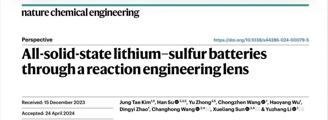 近日,我校讲席教授孙学良、助理教授王长虹和美国加州大学洛杉矶分校助理教授李煜章在Nature Chemical Engineering期刊发表题为“从反应工程角度看全固态锂硫电池All-solid-state lithium–sulfur batteries through a reaction engineering lens”的综述论文。