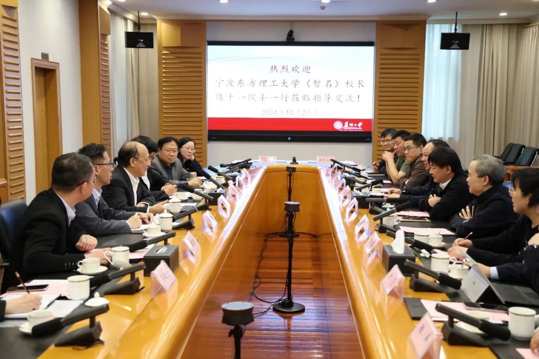 10月27日,宁波东方理工大学与苏州大学战略合作框架协议签订仪式在苏州大学天赐庄校区举行,双方将在科研合作、师资队伍建设、学生交流、博士生联合培养等方面推动合作,服务国家战略,助力创新驱动发展。中国科学院院士、我校校长陈十一,中国工程院院士、苏州大学校长应汉杰出席仪式并讲话,我校副校长郑春苗与苏州大学副校长沈明荣代表双方签约。苏州大学副校长姚建林出席此次签约仪式。