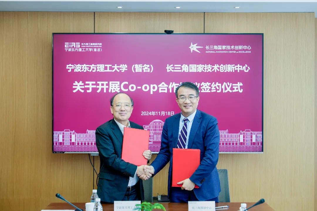 11月18日,宁波东方理工大学与长三角国家技术创新中心(简称“长三角国创中心”)合作签订仪式在我校举行,此次签约是双方深入贯彻落实国家创新驱动发展战略的具体举措。我校将充分发挥科研、人才优势,结合长三角国创中心体制机制、创新体系优势,与长三角国创中心共同开展Co-op(指学生带薪实习教育)合作,推动产学研深度融合,为高质量发展注入创新力量。中国科学院院士、我校校长陈十一,长三角国家技术创新中心主任刘庆出席仪式并签约。我校副校长郑春苗主持此次签约仪式。