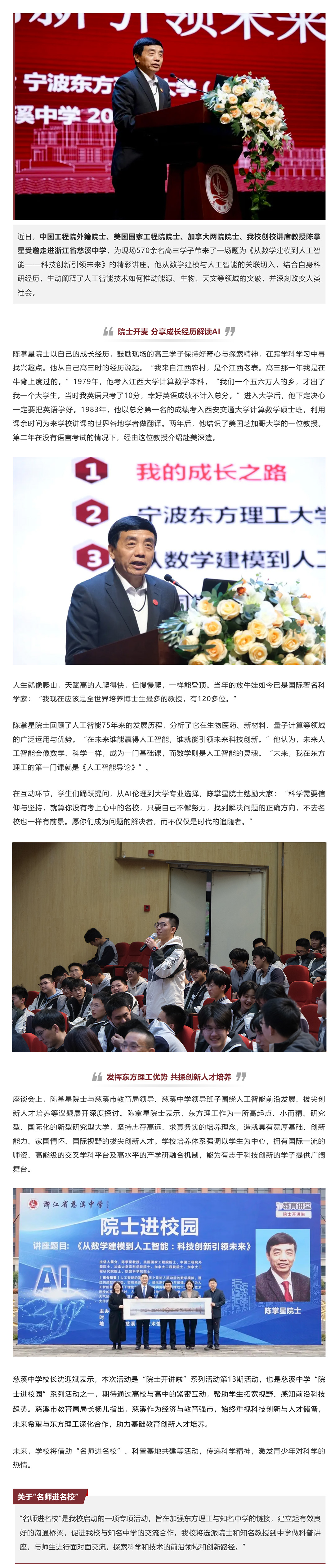 陈掌星院士走进慈溪中学:共话AI未来,携手培育创新人才