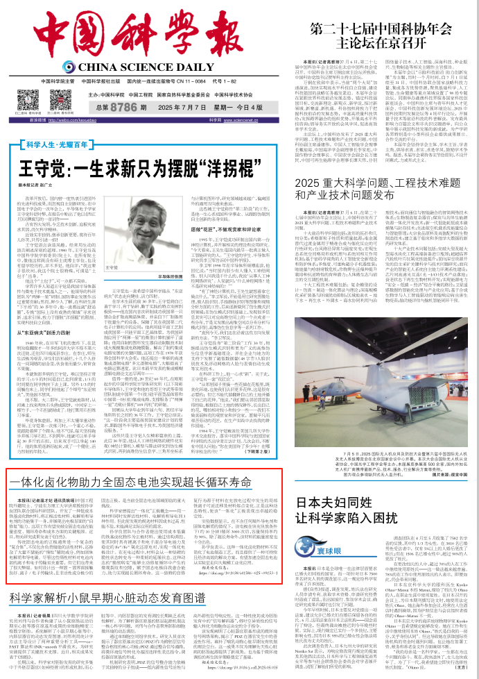 《中国科学报》 (2025-07-07 第1版 要闻 记者温才妃 通讯员姚瑶)