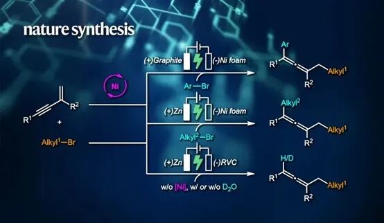 在朱宸的研究生涯中,他探索了有机光化学、电化学、过渡金属偶联和DFT计算等前沿领域。2019年,他与合作伙伴岳会锋博士在《Nature Catalysis》共同发表关于光镍协同催化的创新研究,揭示了通过调整光催化剂的三线态能级,实现控制镍催化偶联产物的立体选择性。这种方法在当时是非常创新的,因为它使用了光催化剂的特性来精确控制化学反应的产物。随后,他将有机光化学与电化学研究结合起来,于2022年在《Nature Communications》发表论文,展示了如何通过变换催化模式来获得不同立体选择性的化合物。这一交叉研究领域的未来十分光明,有机光电催化结合了光催化和电催化的优势,预示着能够开发更具挑战性的新型催化模式和创新合成方法。2023年,朱宸与Rueping教授再次合作,在《Nature Synthesis》发表电镍协同催化偶联最新成果。这种温和高效的电化学方法为合成结构和功能各异的联烯化合物提供了一个多功能的平台,具有广泛的官能团容忍性和良好的化学选择性和区域选择性,使得它在合成含联烯的天然产物和药物类似物等复杂分子方面具有较大的应用潜力。