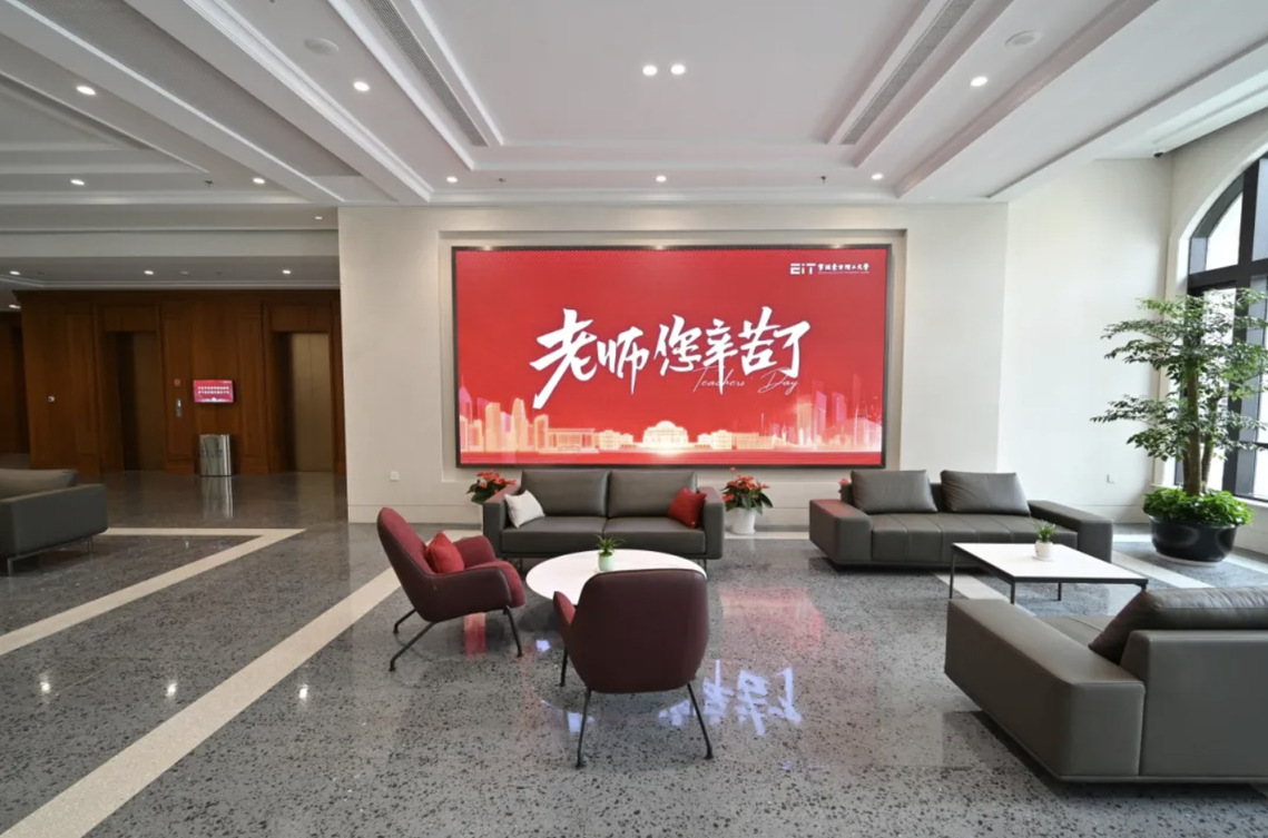 在永久校区、过渡校区各处电子屏,纷纷“为教师亮灯”。“以教育家精神铸魂强师,谱写教育强国建设华章”“强师育栋梁,东方启新篇”“老师,您辛苦了!”等祝福语循环滚动,向每一位师者致以最真挚的敬意。