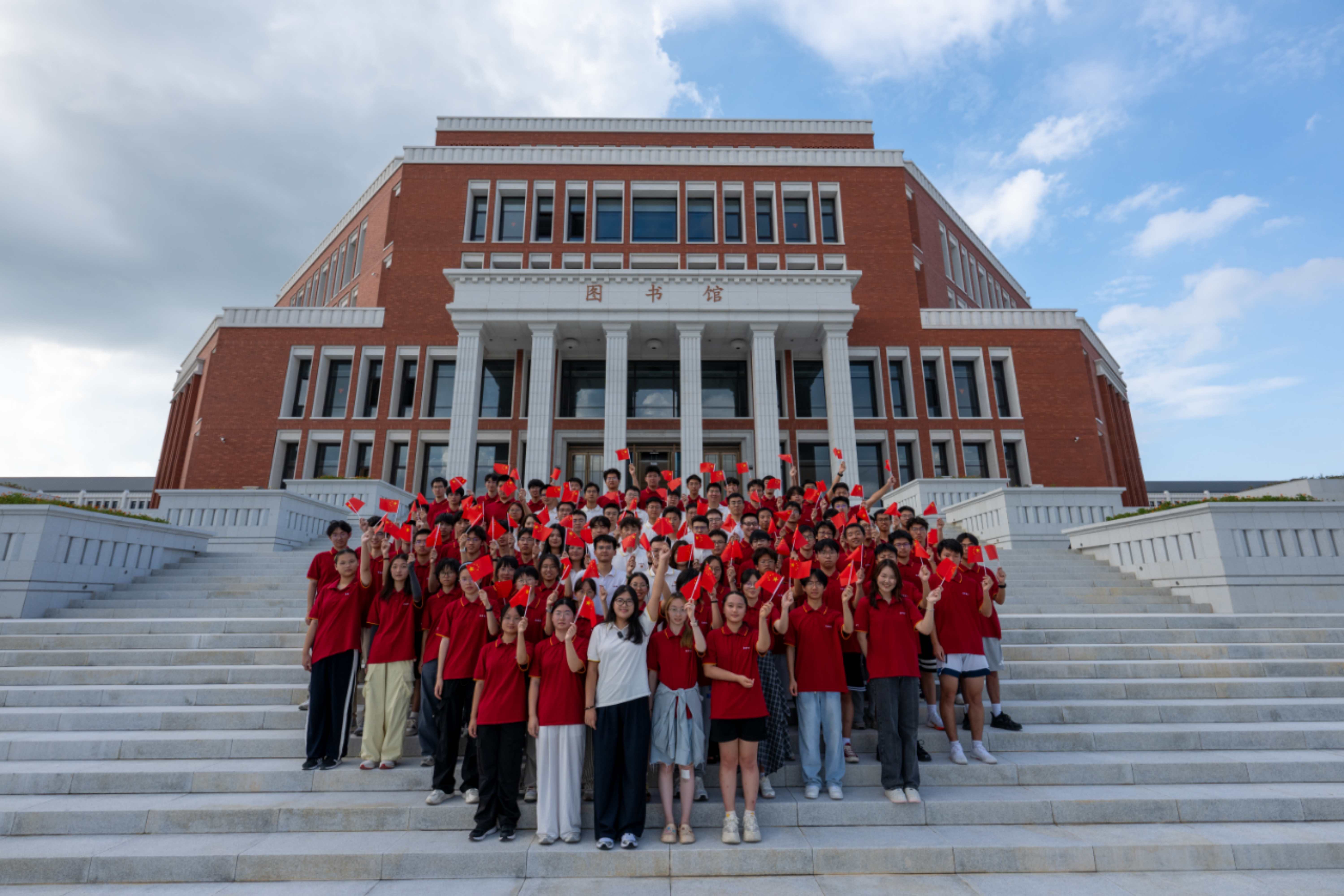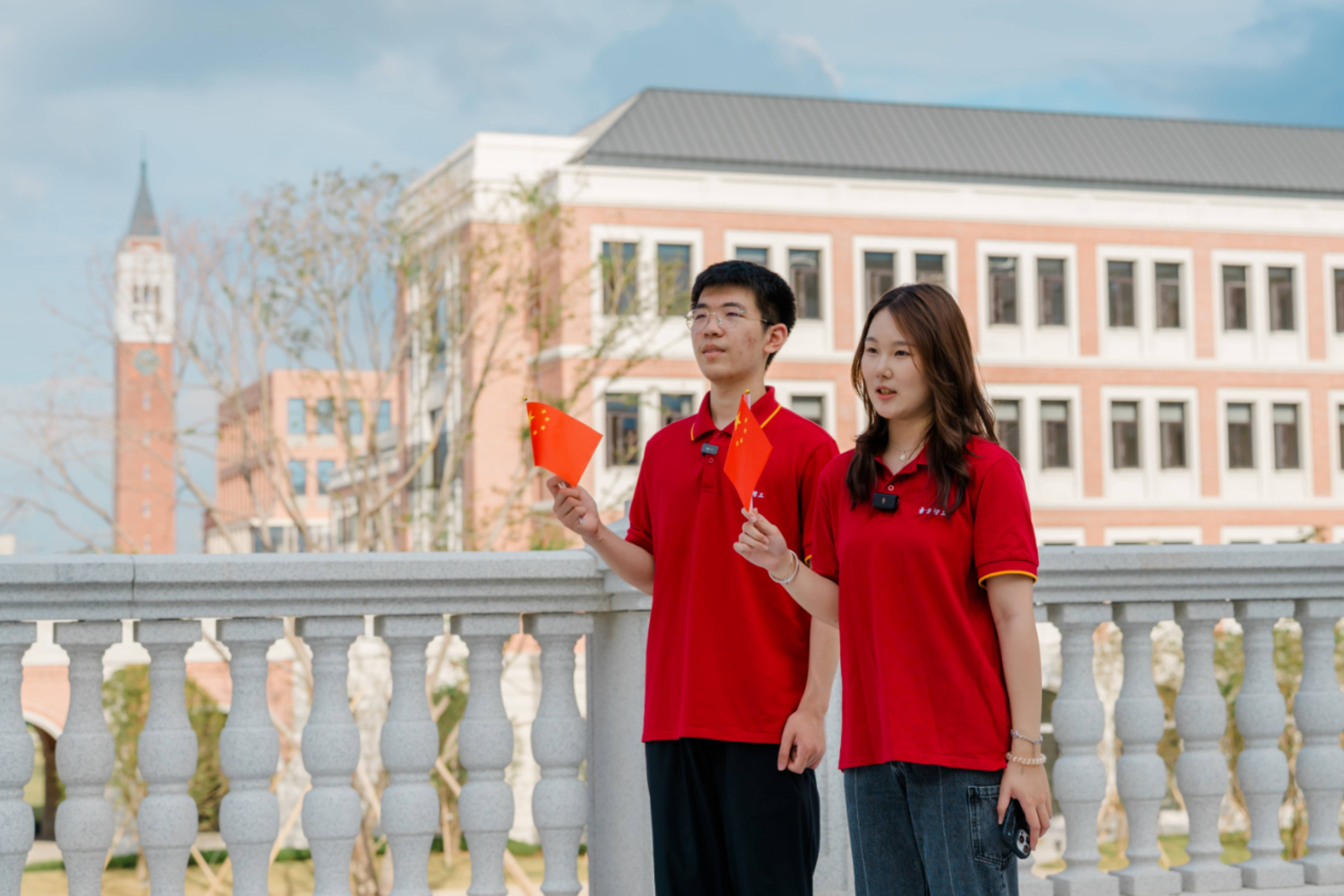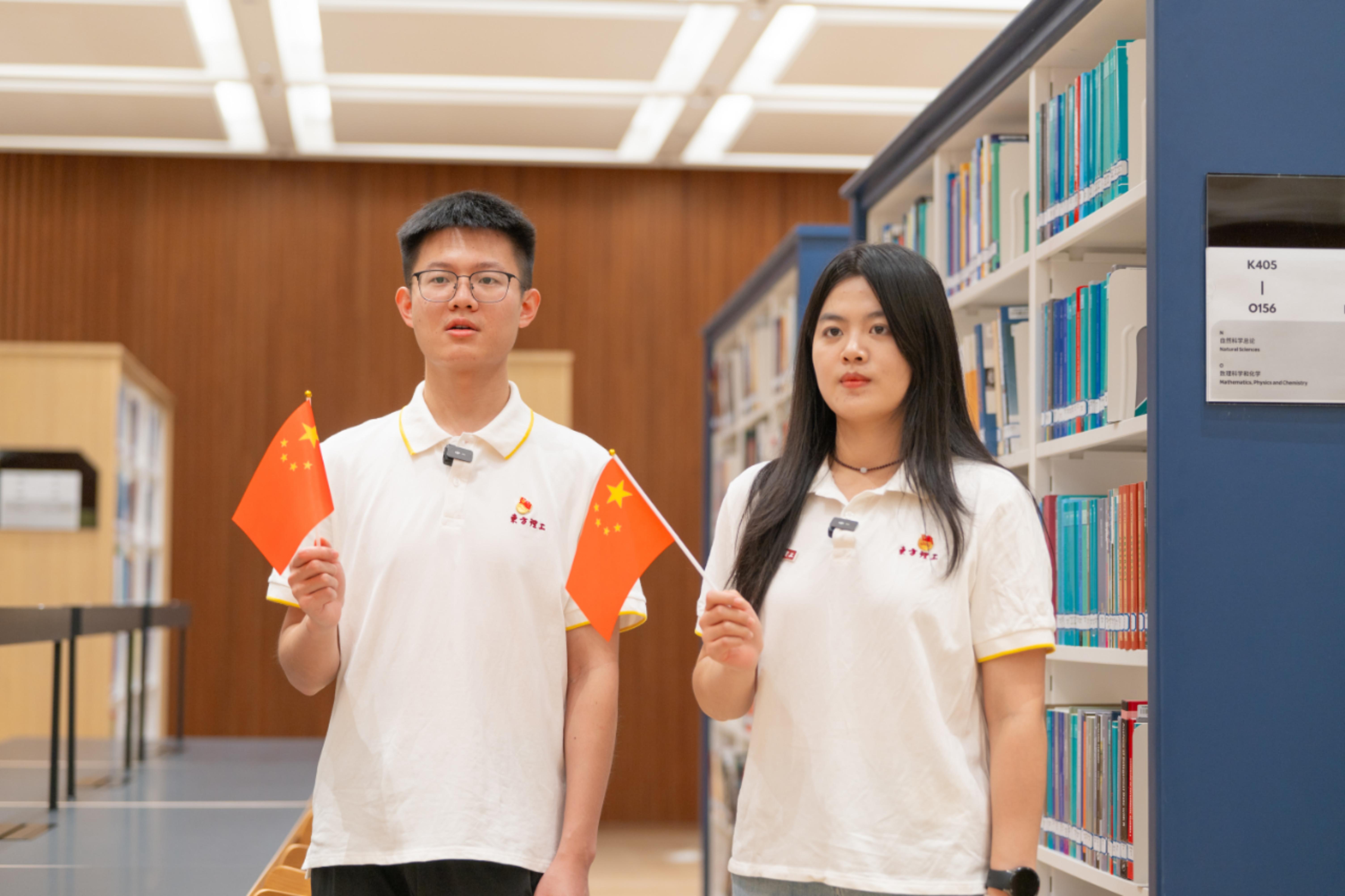 镜头里,是青年学子朝气蓬勃的面庞;镜头外,是他们对国家未来的思考与担当。活动的高潮,全体学生齐聚东方理工图书馆南广场,挥舞着国旗同声高呼:“以心中红星,献礼盛世中华!祝祖国生日快乐!”嘹亮的誓言穿透校园,饱含着东方理工学子对祖国母亲的深情告白。