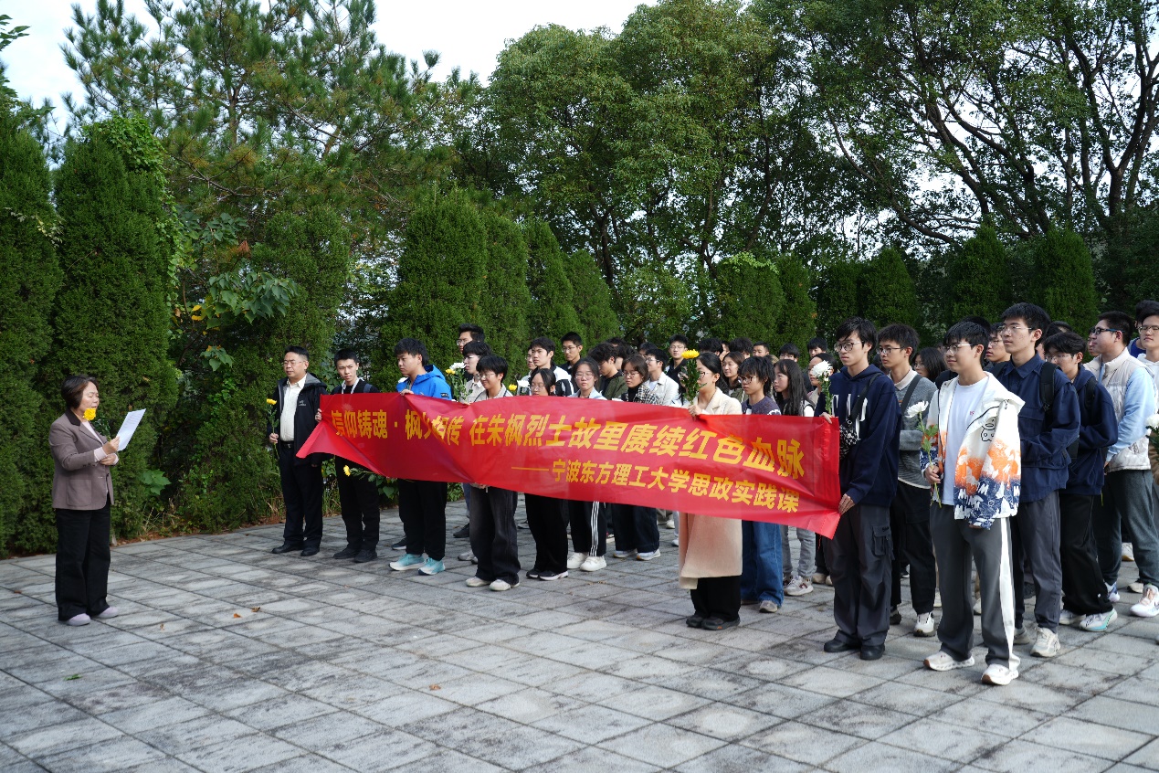 11月10日下午,宁波东方理工大学全体本科生,走进镇海烈士陵园,开展“信仰铸魂·枫火相传”主题纪念活动,在朱枫烈士的故里,接受一场深刻的爱国主义与理想信念教育。陵园内苍松翠柏环绕,气氛庄严肃穆。一堂特殊的“现场思政课”在这里开讲。