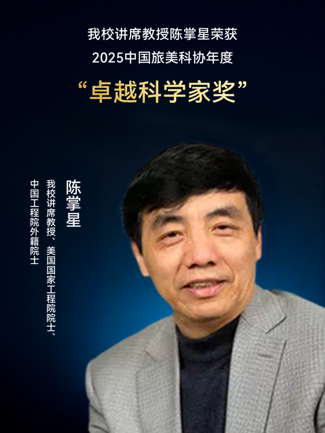 近日,宁波东方理工大学讲席教授、美国国家工程院院士、中国工程院外籍院士陈掌星,荣获2025中国旅美科协年度“科技三大奖”中的“卓越科学家奖”。