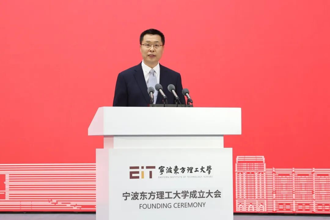 王成在讲话中表示,宁波东方理工大学的成立,是加快建设教育强省、科技强省、人才强省的生动实践,是浙江和宁波教育发展史上具有里程碑意义的大事。希望宁波东方理工大学锚定正确办学方向,坚持以习近平新时代中国特色社会主义思想为指导,强化党建引领,坚持立德树人,积极探索办学新模式,努力成为具有重大影响力的世界一流大学;主动服务发展大局,坚持“两新”深度融合,聚焦现代化产业体系建设,深化“高校+平台+企业+产业链”结对合作,推动创新成果加速转化为新质生产力。党委、政府将始终高度重视、大力支持学校建设发展,用心做好服务保障,构建一流创新生态,营造崇学重教的浓厚氛围。