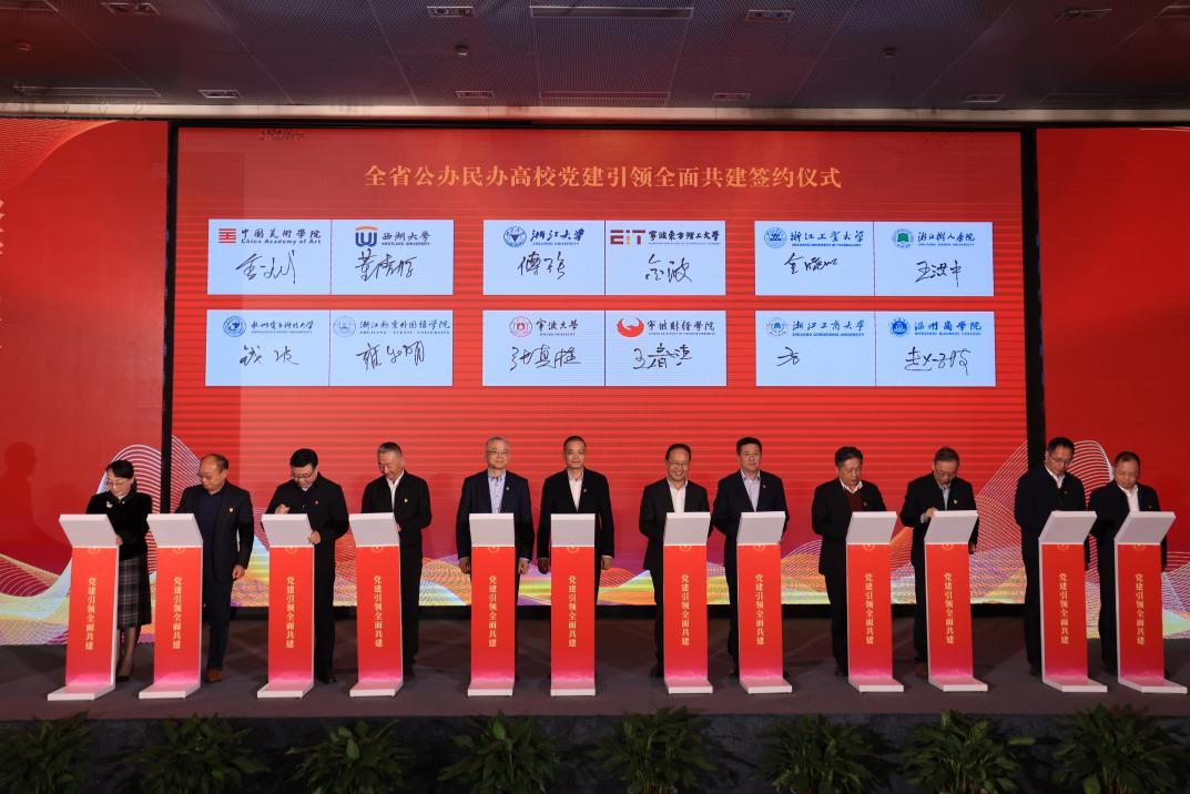 金波与浙江大学党委副书记傅强代表两校正式签署党建引领全面共建协议,标志着双方开启了优势互补、资源共享、协同发展的全新篇章。根据共建方案,对照省委教育工委文件要求,双方将在五年共建期内,围绕组织共建、协同育人、队伍培养、学科专业建设和产学研合作等方面深化合作,努力实现优势互补、资源共享、合作共赢,争取形成一批有特色、在全省范围内有影响力的共建成果,为我省高等教育事业的高质量发展贡献力量。
