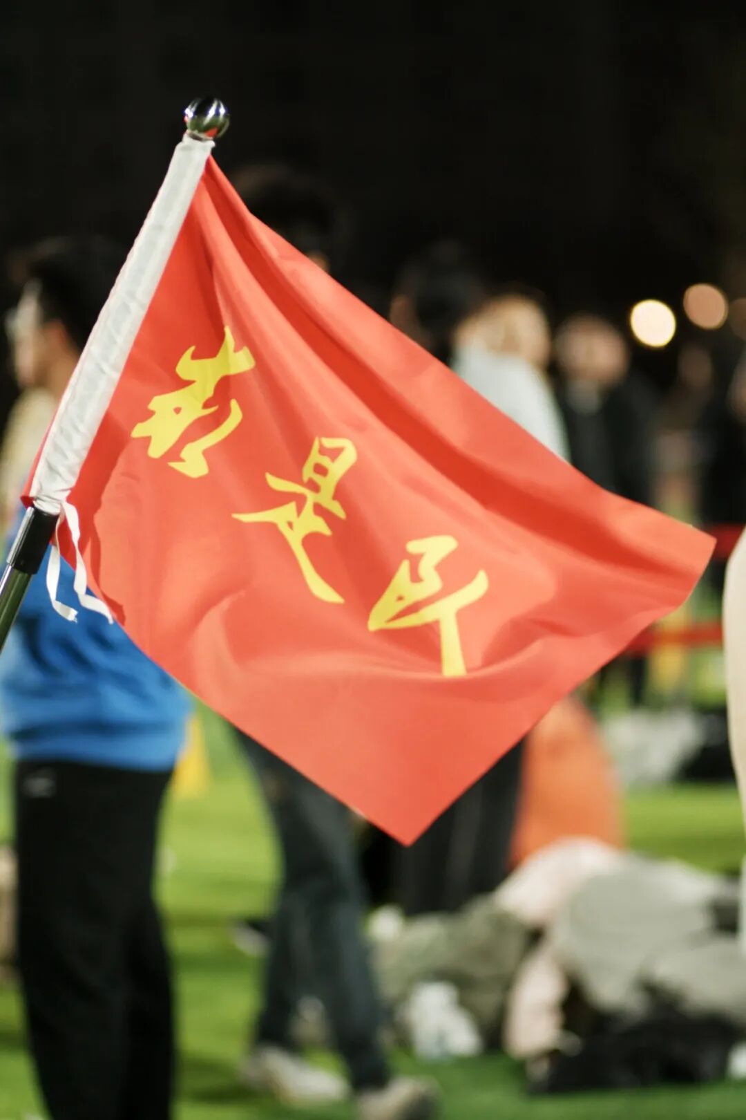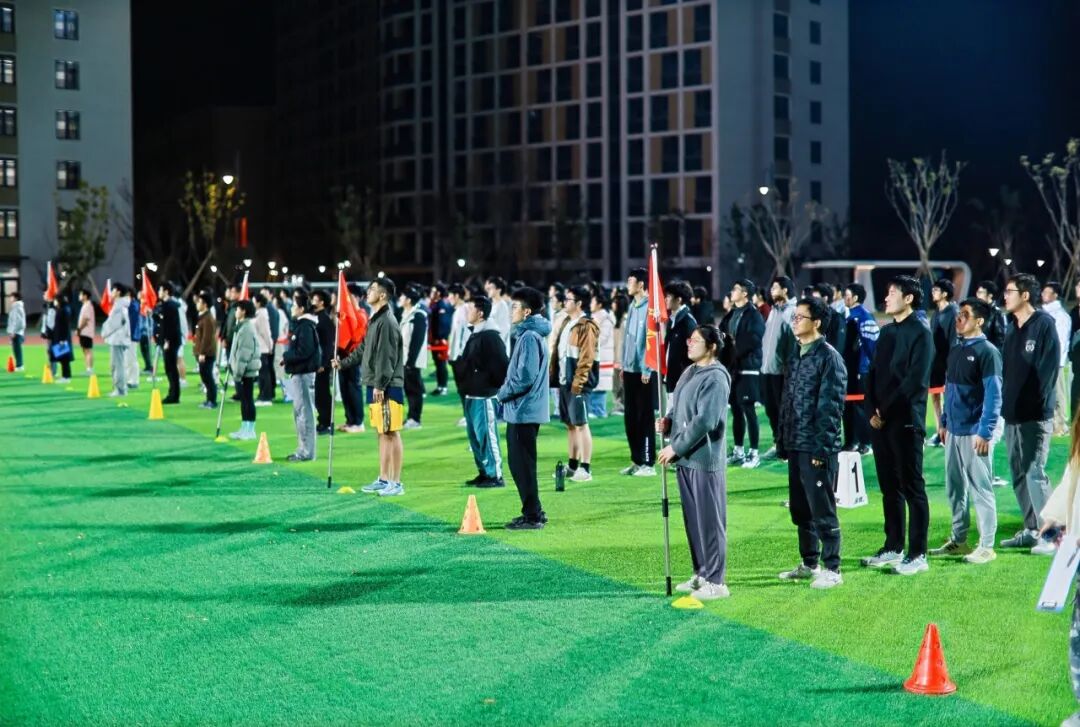 夜幕初垂,田径场灯火通明。17时30分,随着帷幕拉开,开幕式上,“觉醒”“燎原”“星火”“求是”“追光”“知行” 六支队伍,高举队旗,喊响口号,依次入场。