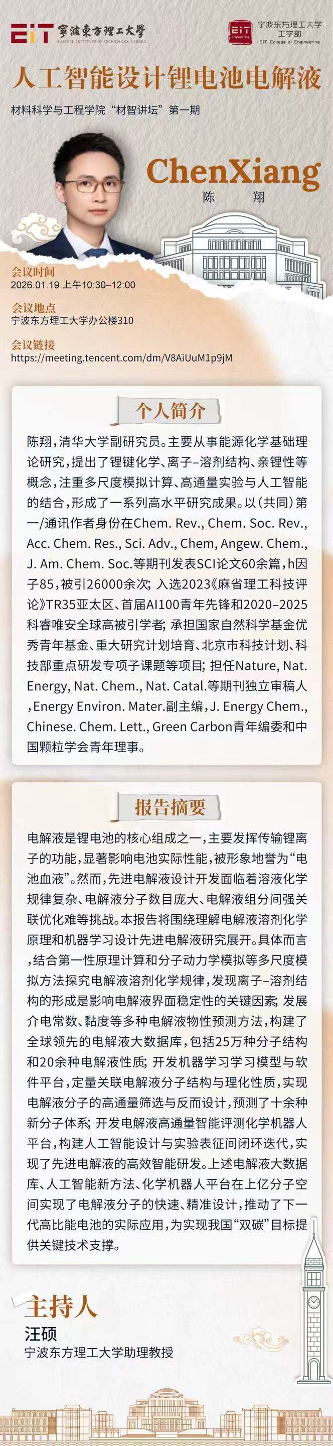 材料科学与工程学院“材智讲坛” | 陈翔:人工智能设计锂电池电解液
