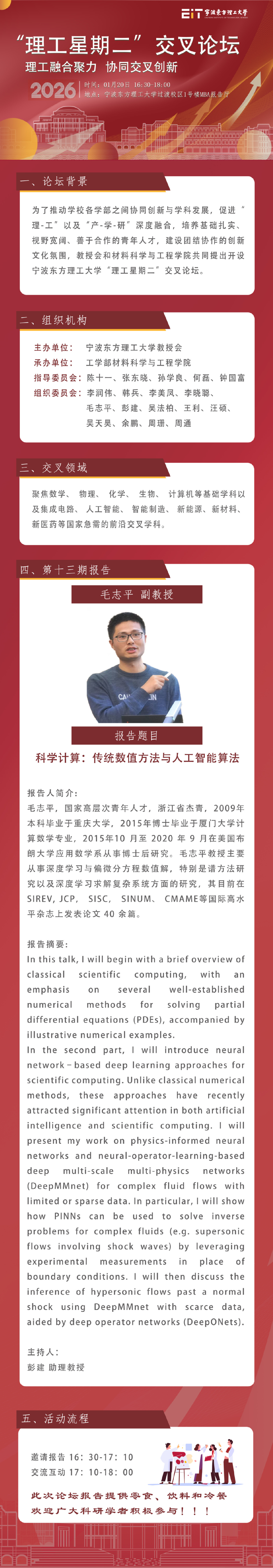 “理工星期二”论坛预告 | 毛志平-科学计算:传统数值方法与人工智能算法