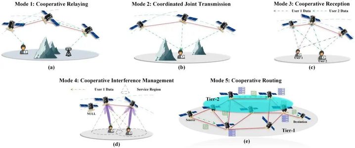 联合传输:多颗卫星同时为用户发送数据,提升传输效率。