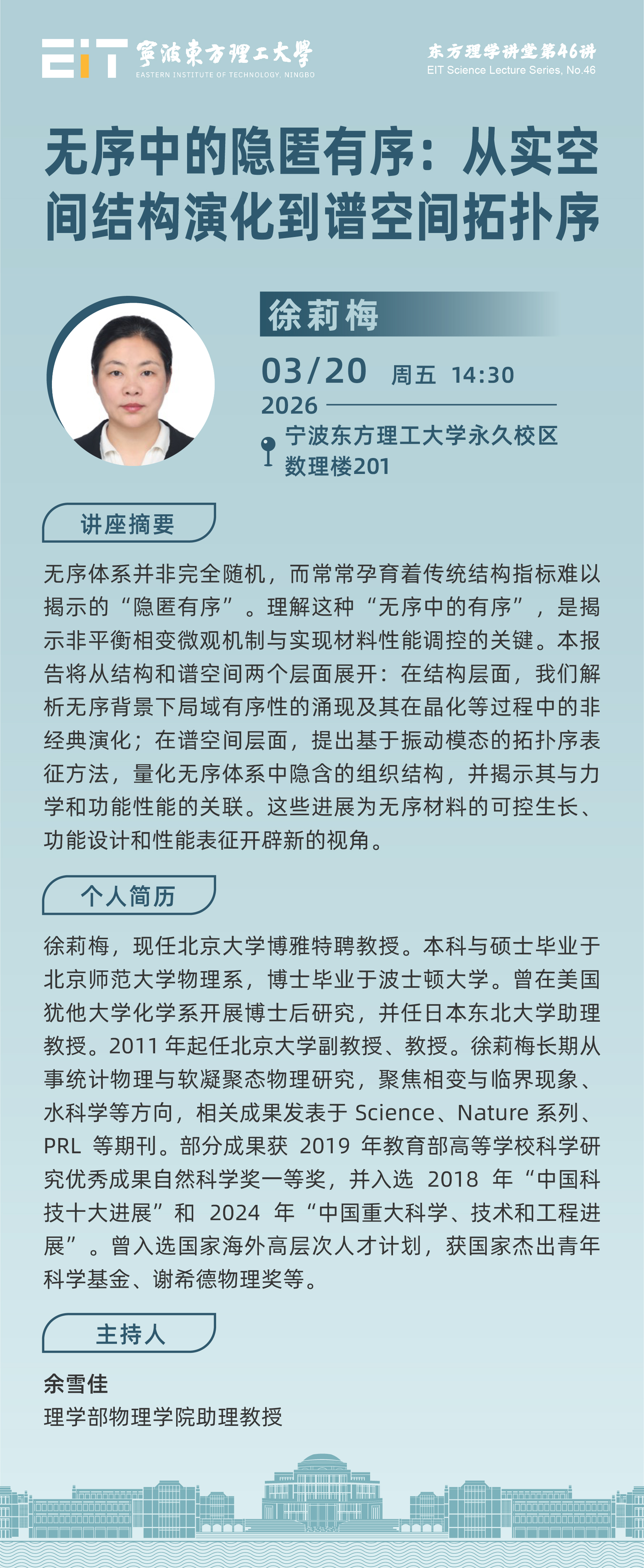 徐莉梅 | 无序中的隐匿有序:从实空间结构演化到谱空间拓扑序