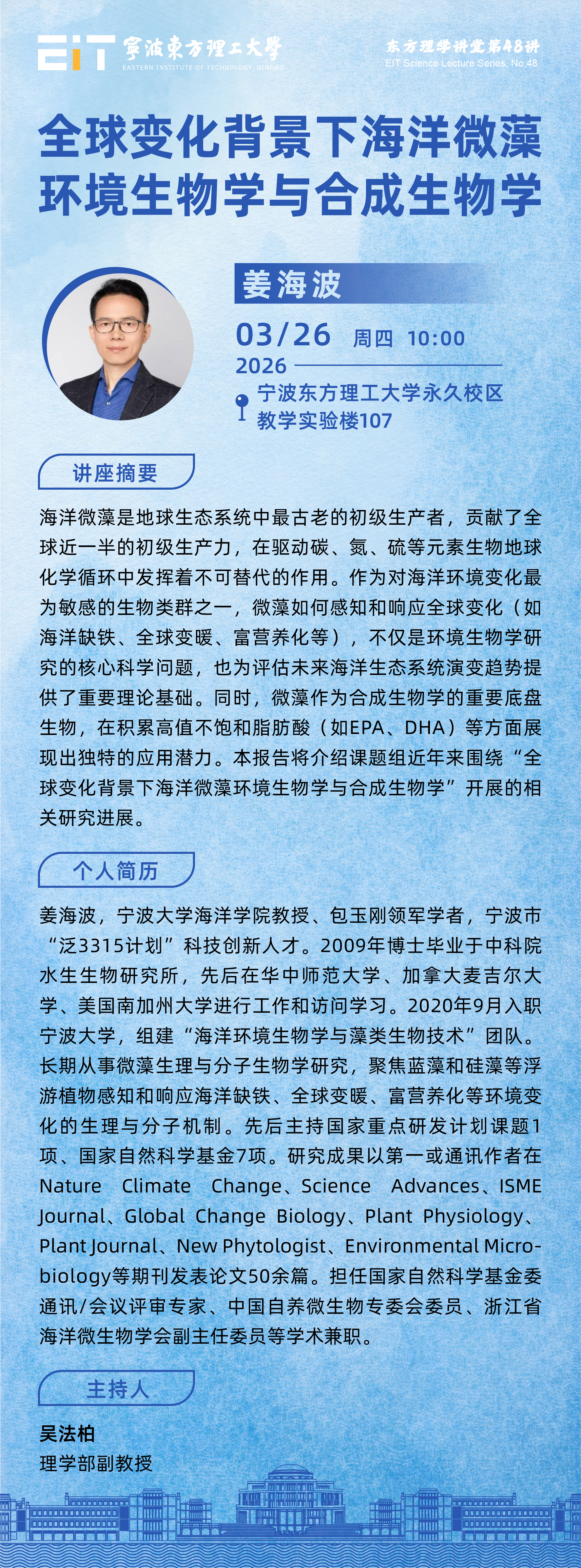姜海波 | 全球变化背景下海洋微藻环境生物学与合成生物学