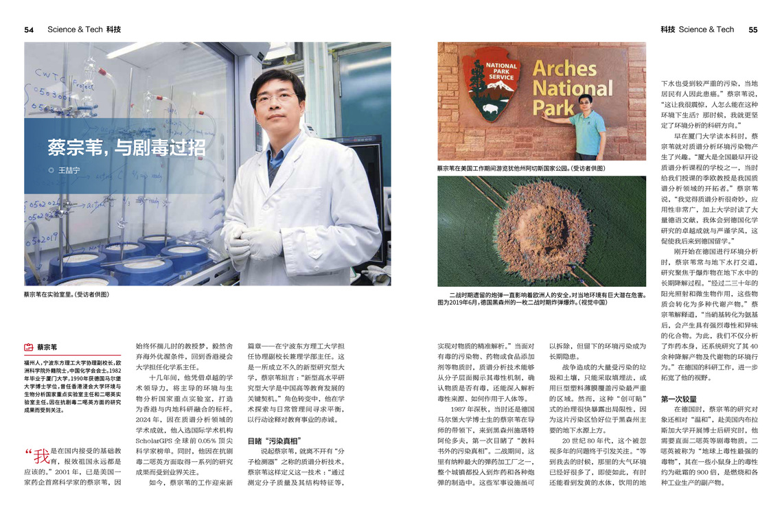 十几年间,他凭借卓越的学术领导力,将主导的环境与生物分析国家重点实验室,打造为香港与内地科研融合的标杆。2024年,因在质谱分析领域的学术成就,他入选国际学术机构全球前0.05%顶尖科学家榜单。同时,他因在抗剧毒二恶英方面取得一系列的研究成果而受到业界关注。