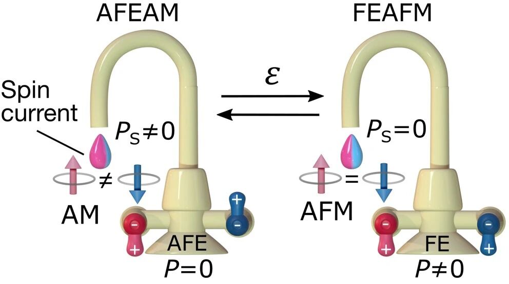 Based on this principle, the research team vividly likened this system to an electric spin faucet: when the two handles point in opposite directions (antiferroelectric state), the system's altermagnetism is turned on, outputting a spin-polarized current; when the two handles point in the same direction (ferroelectric state), the altermagnetism is turned off, outputting a current without net spin polarization. Through this intuitive yet profound model, the research team utilized small electric fields (akin to turning the faucet handles) to achieve on/off switching of the spin polarization, providing a new scheme for low-energy, reversible, and fast electric-field control of magnetism.