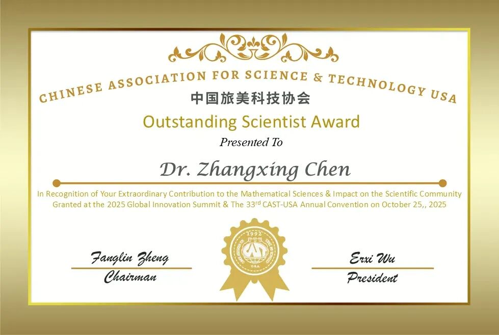Dr. Zhangxing Chen honored with 2025 CAST-USA Outstanding Scientist Award | Courtesy of the Conference