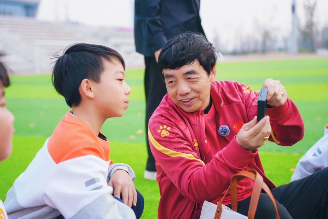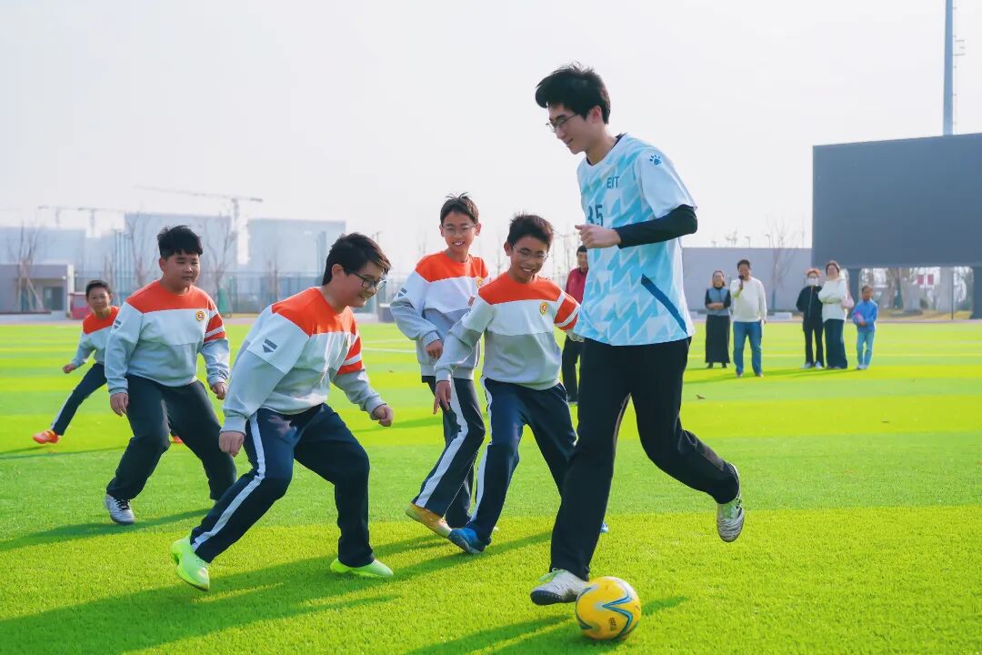 With the whistle, the young players—energetic in their school uniforms—kicked off into action under Professor Zhangxing Chen's guidance. Sprinting, passing, shooting... Each coordinated play on the green pitch was a display of football's inherent energy and teamwork, effortlessly closing the distance between the children and the renowned academician. In that moment, the ball itself became the connection between them.