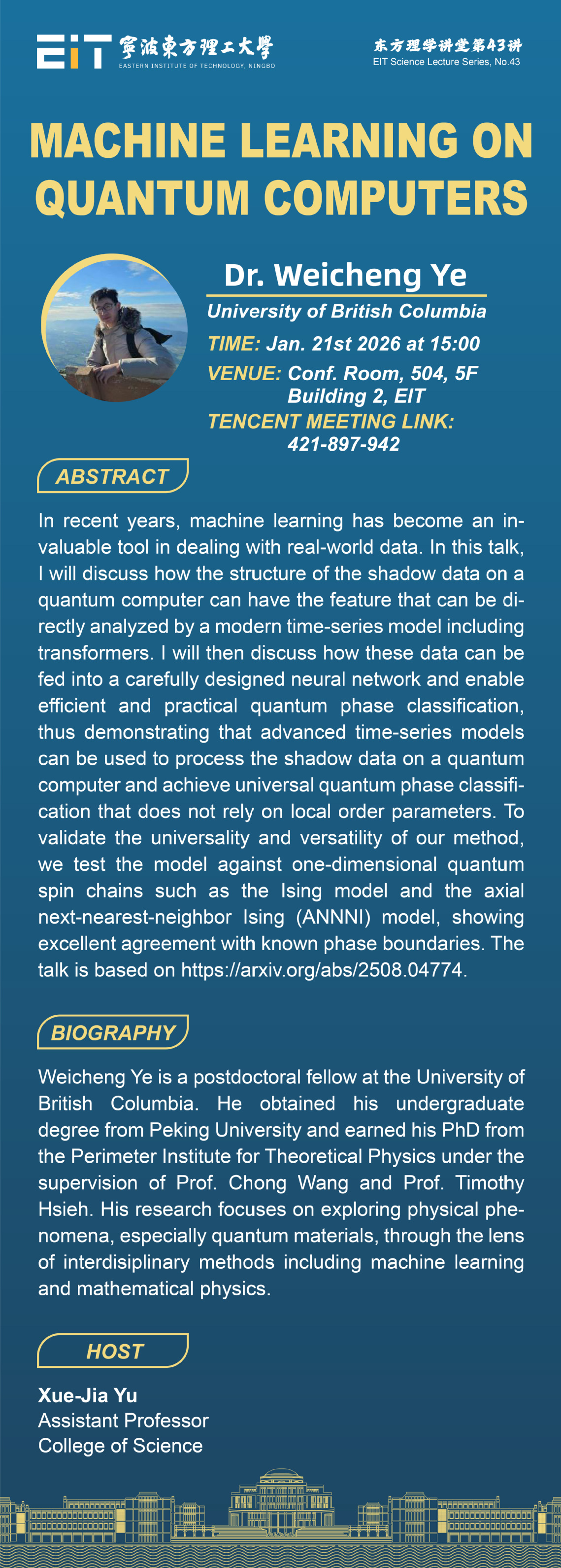 Lecture Series | Weicheng Ye: Machine Learning on Quantum Computers
