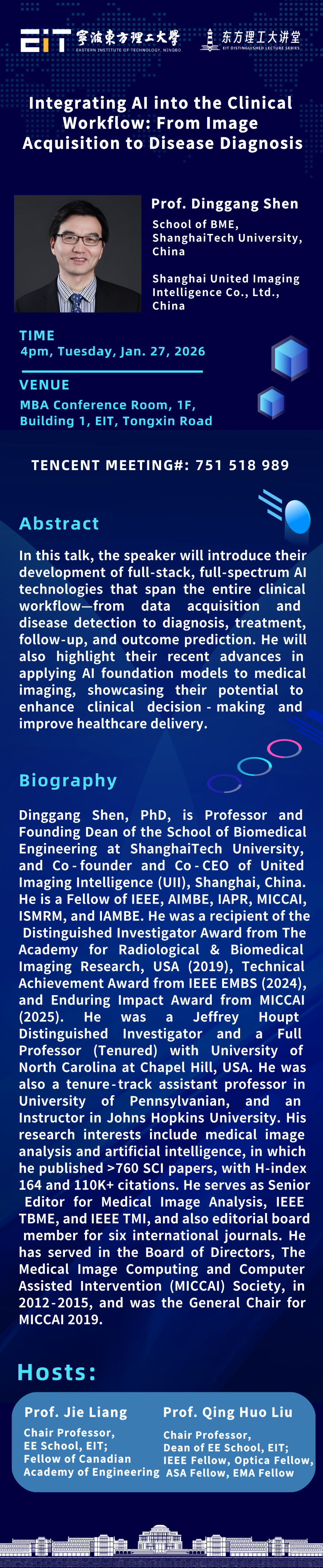 Lecture Series | Dinggang Shen: Integrating AI into the Clinical Workflow: From Image Acquisition to Disease Diagnosis