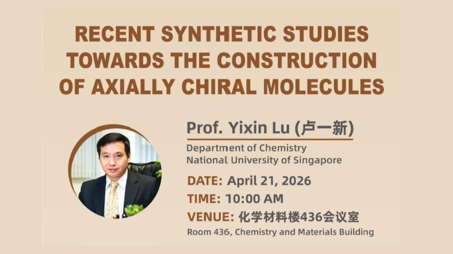 Lecture Series | Yixin Lu: Recent Synthetic Studies Towards the Construction of Axially Chiral Molecules