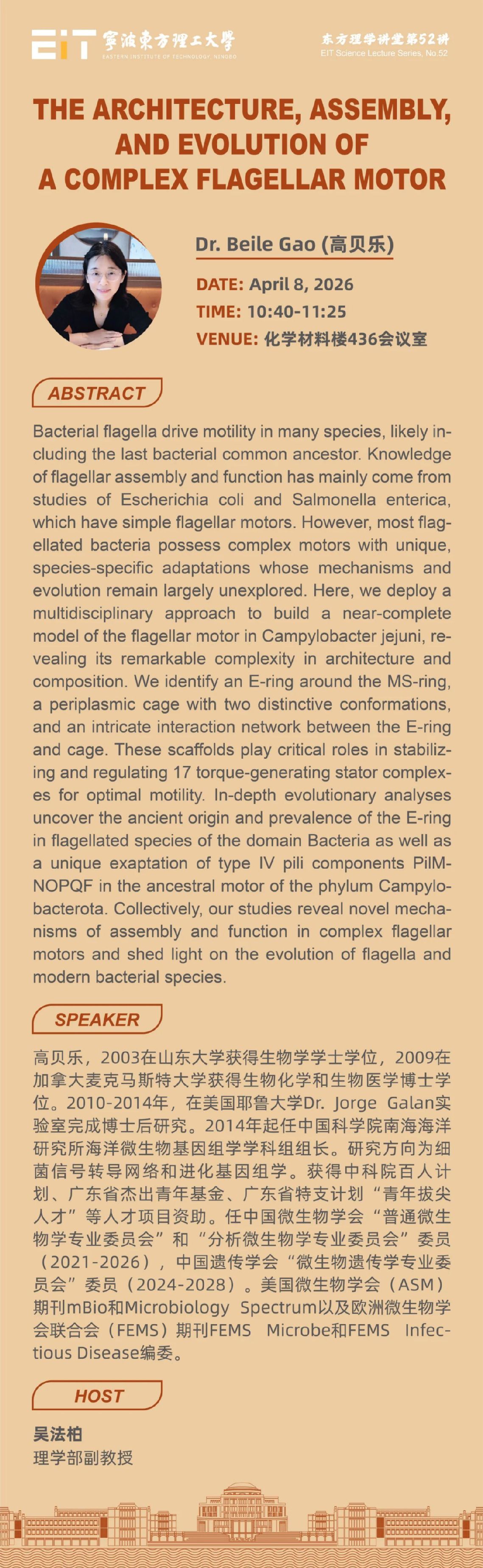 Lecture Series | Beile Gao: The Architecture, Assembly, and Evolution of a Complex Flagellar Motor