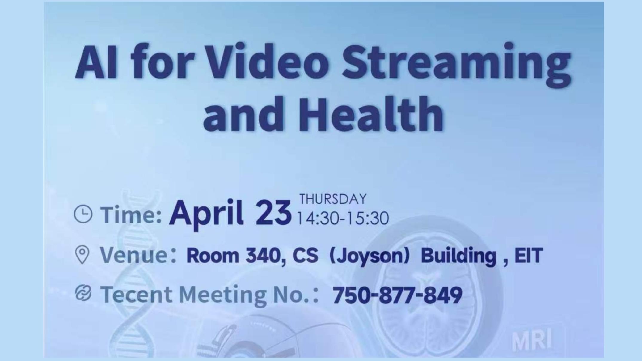 Lecture Series | Yao Wang: AI for Video Streaming and Health