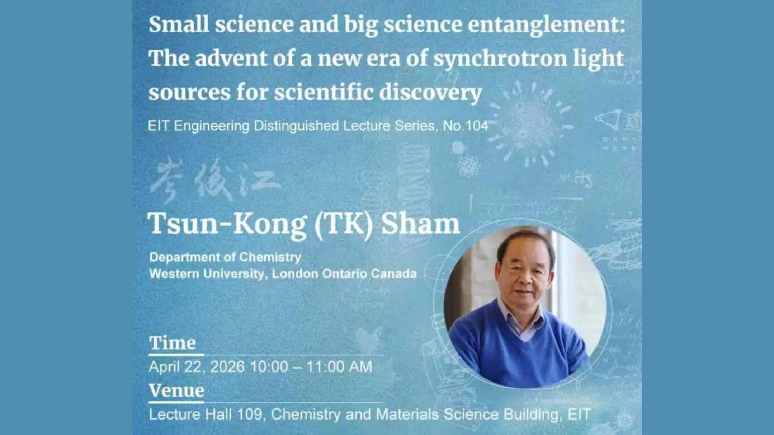 Lecture Series | Tsun-Kong(TK) Sham: Small science and big science entanglement: The advent of a new era of synchrotron light sources for scientific discovery