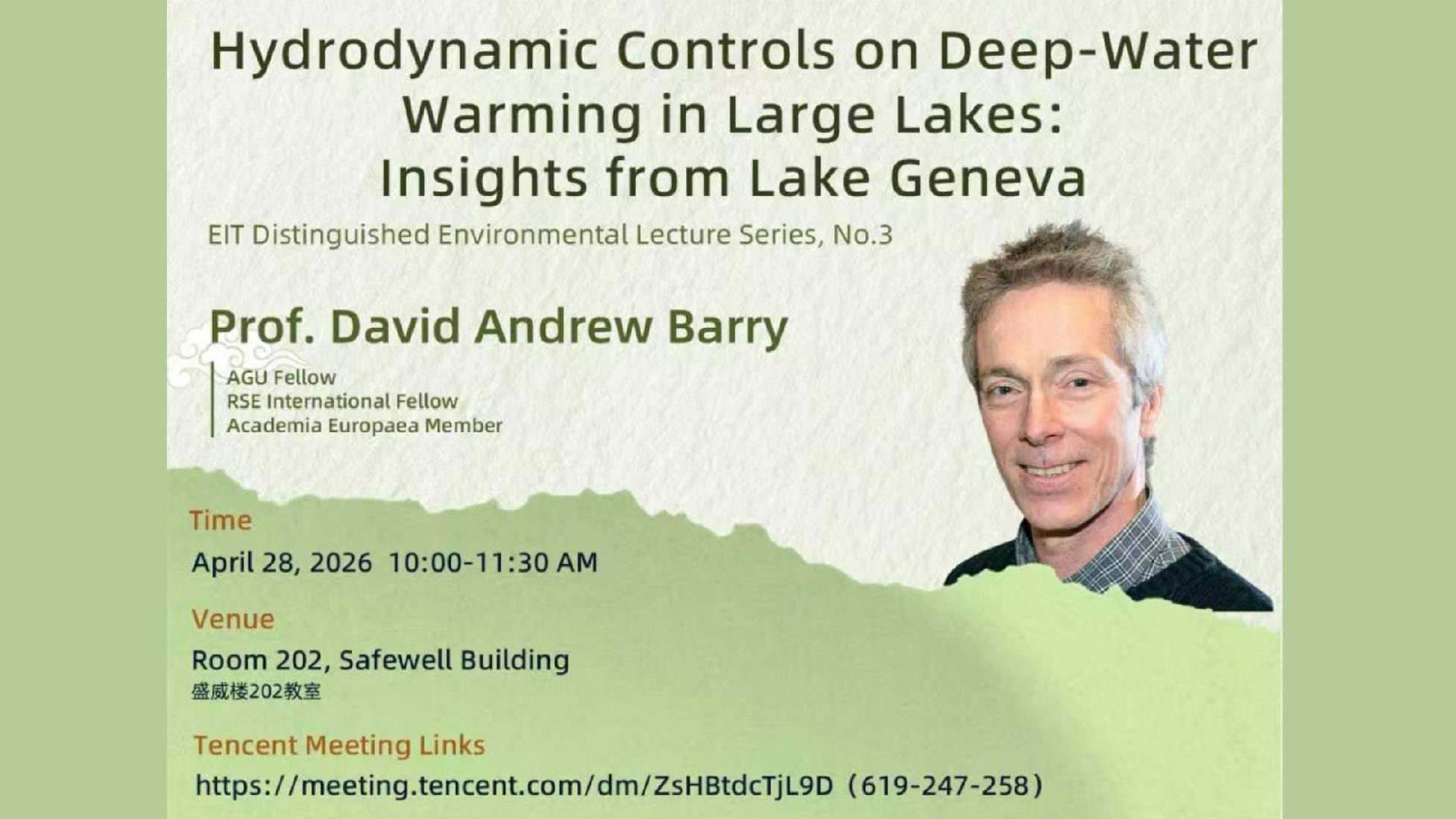Lecture Series | David Andrew Barry: Hydrodynamic Controls on Deep-Water Warming in Large Lakes: Insights from Lake Geneva
